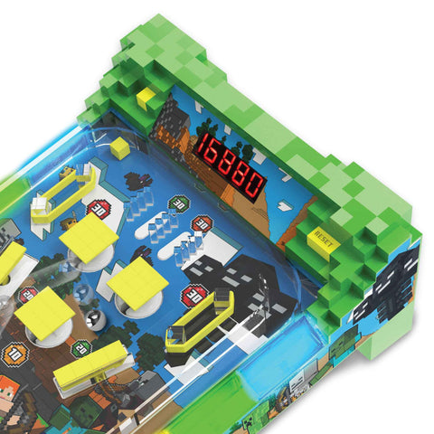 The compact tabletop design makes it perfect for bedrooms, playrooms, or family game areas, providing endless entertainment that combines beloved Minecraft adventures with traditional pinball mechanics.