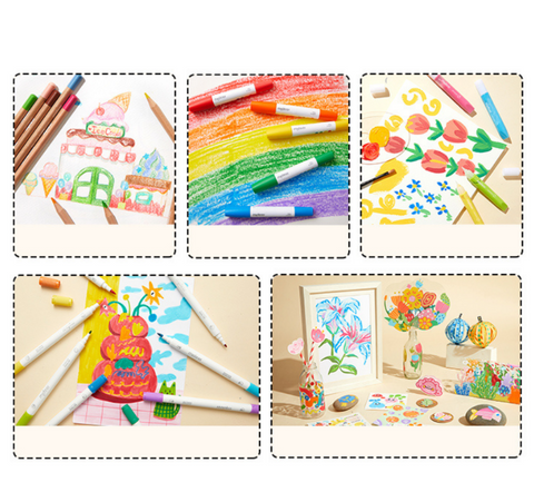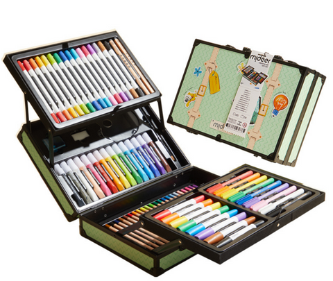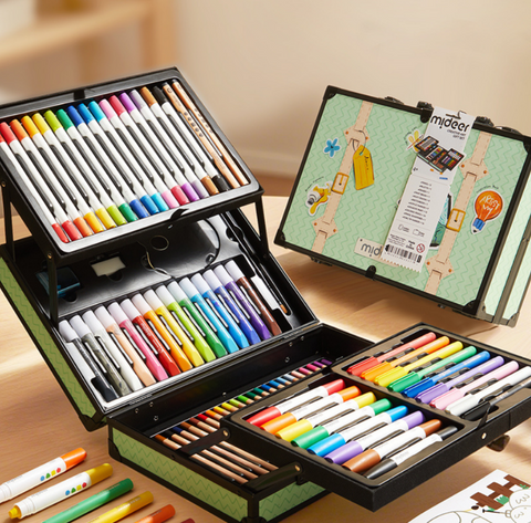 With this delightful art suitcase, young artists can explore multiple mediums including coloured pencils, acrylic markers, dual-tip water-based markers, silky oil pastels, gouache paints, and more. It combines portability with comprehensive art supplies in one charming travel-inspired case. Designed like a miniature suitcase, it makes art time feel special and organized wherever children create.