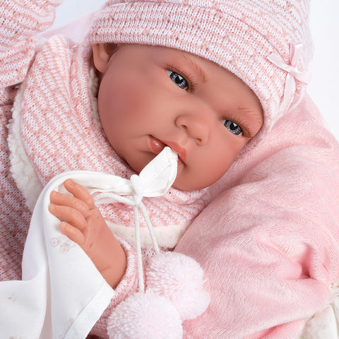 Nica is a charming, very soft newborn who wears a pretty pink outfit and her matching cushion from which she is inseparable. She falls asleep quickly after playtime. She wears a pretty pink outfit and includes a matching, multi-functional comforter/cushion which she loves!