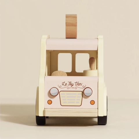 A fresh take on a classic, playtime doesn't get much sweeter than this miniature, doll sized ice-cream van. Painted in soft pink, grey and cream hues, this retro style toy is ready to roll off to mini adventures.