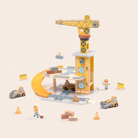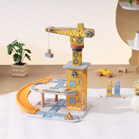 All hands on deck at the port! This engaging wooden port crane set invites children to lift, move, and load cargo just like a real dockyard. The tall working crane features functional lifting mechanisms that let little operators manage shipments and organize goods for delivery.
