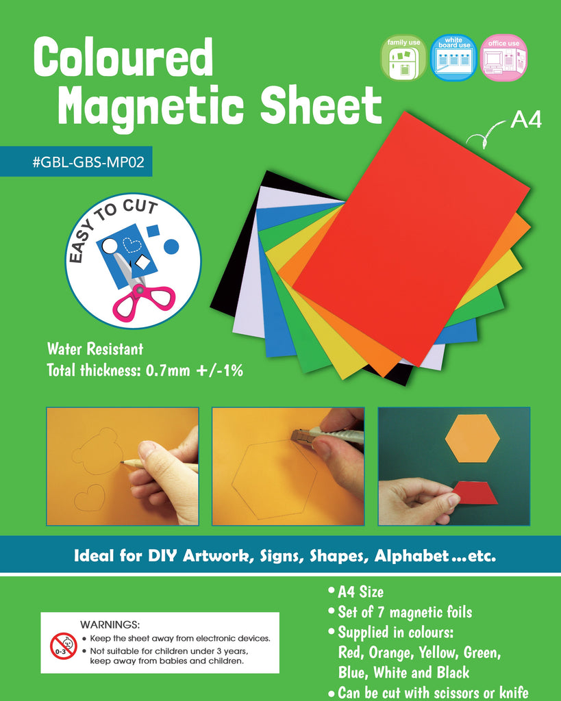 Includes: 7 x Glossy Magnetic A4 Sheets (in 7 Colours)