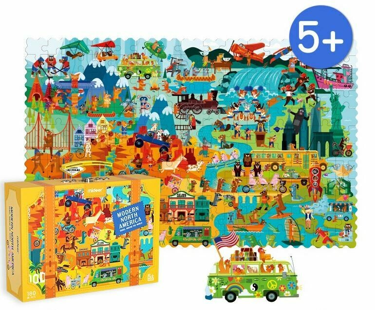 The Travel Around the World Puzzle Series provides insight in to all your favourite places! The series includes 4 different themes, this one specifically shows illustrations of North America, including landmarks, cultural customs and holiday traditions.