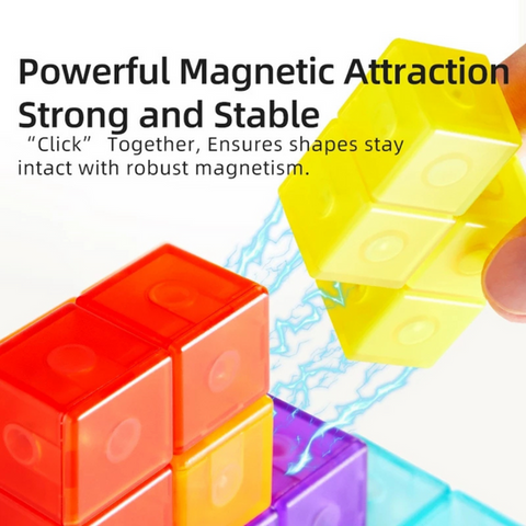Each cube features powerful magnets on every side for firm, stable connections that won't collapse during play. The compact, portable design makes it perfect for learning on the go - at home, in the car, or while traveling.