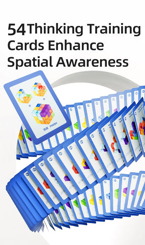 The set includes 54 cognitive training challenge cards across 4 major play styles, progressively developing spatial awareness, problem-solving skills, and geometric understanding. Children can follow card challenges or create their own infinite shape combinations, stimulating creativity and critical thinking.