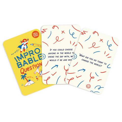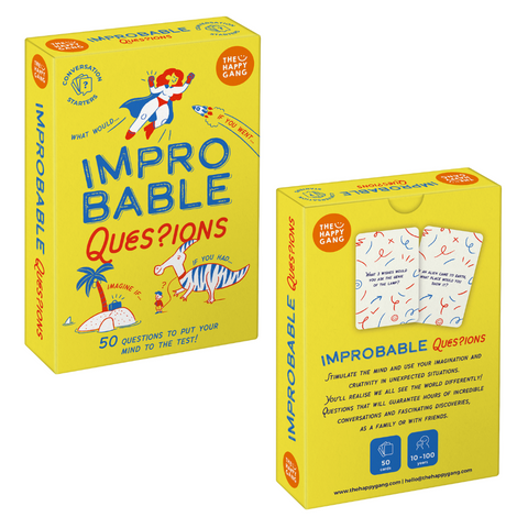This imaginative card deck features 50 thought-provoking questions designed to challenge perspectives and spark fascinating conversations. Part of The Happy Gang's "Conversation Starters" range, Improbable Questions encourages families to think differently while creating meaningful connections through unexpected dialogue.