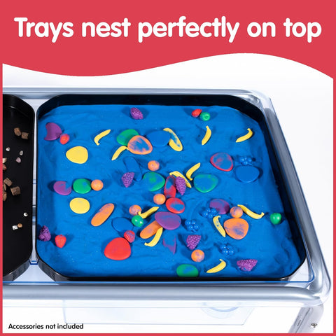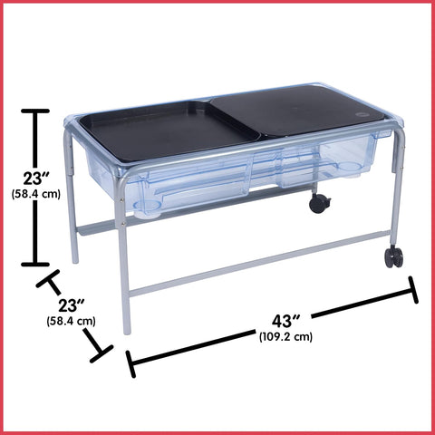Discover endless sensory learning with this premium sand and water tray set. It features a water tight screw-in plug for easy water drainage and the highest quality construction and 58cm non-foldable stand for superior stability. Complete with clear tray, dual black lids, and Fun2Play activity inserts, this versatile system transforms into multiple learning stations for water play, sand exploration, or tabletop activities.