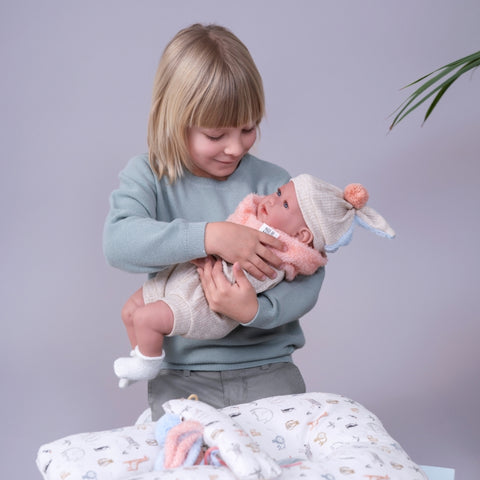 Meet the enchanting world of Llorens Newborn dolls, where artisan tradition meets interactive nurturing play. These beautiful soft-bodied newborn dolls are entirely handcrafted in Spain by skilled artisans in Onil, the heart of doll-making since 1958. Featuring both soft body comfort and articulated movement, plus an adorable crying mechanism that enhances the realistic caregiving experience.